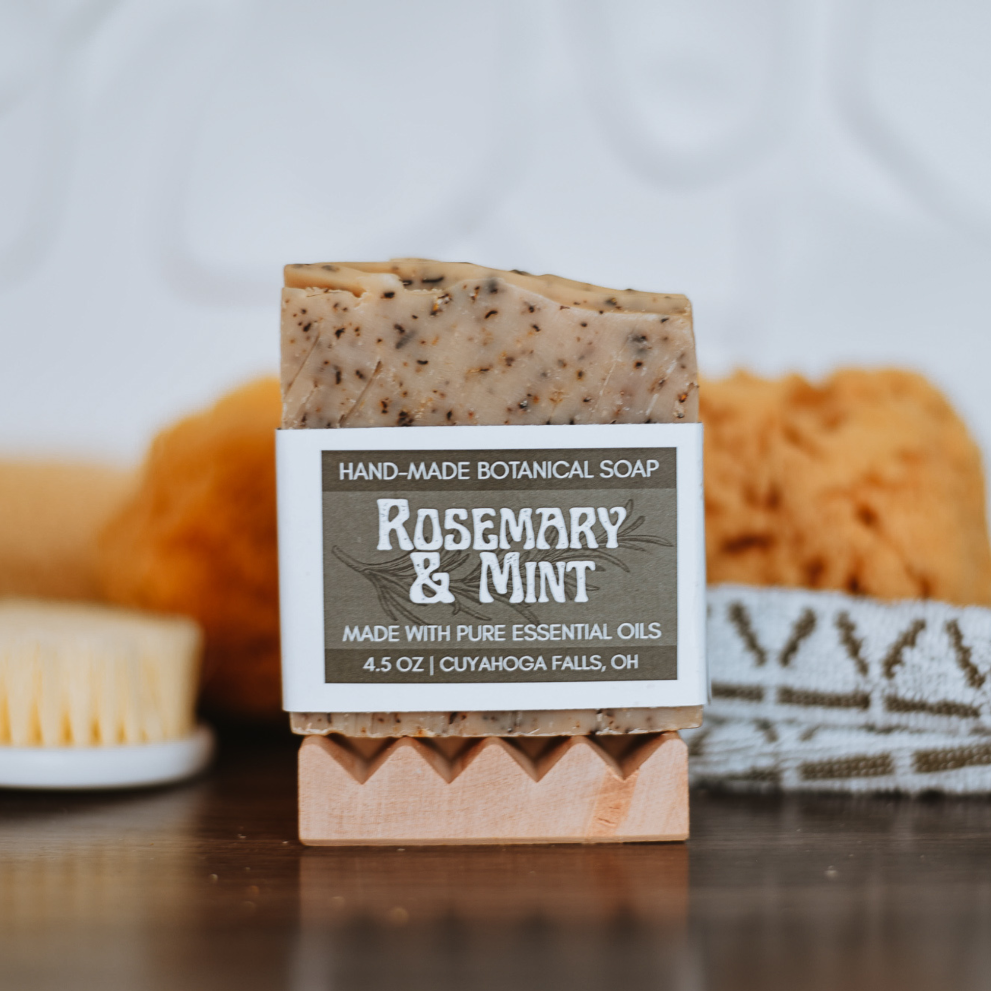 Olive oil, coconut oil, palm oil, shea butter, sodium hydroxide, kaolin clay, rosemary and peppermint essential oils